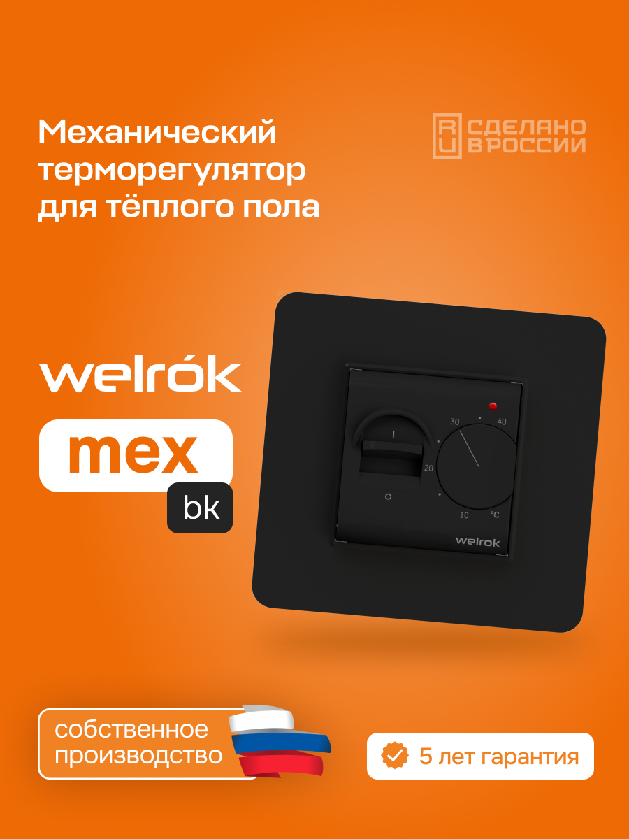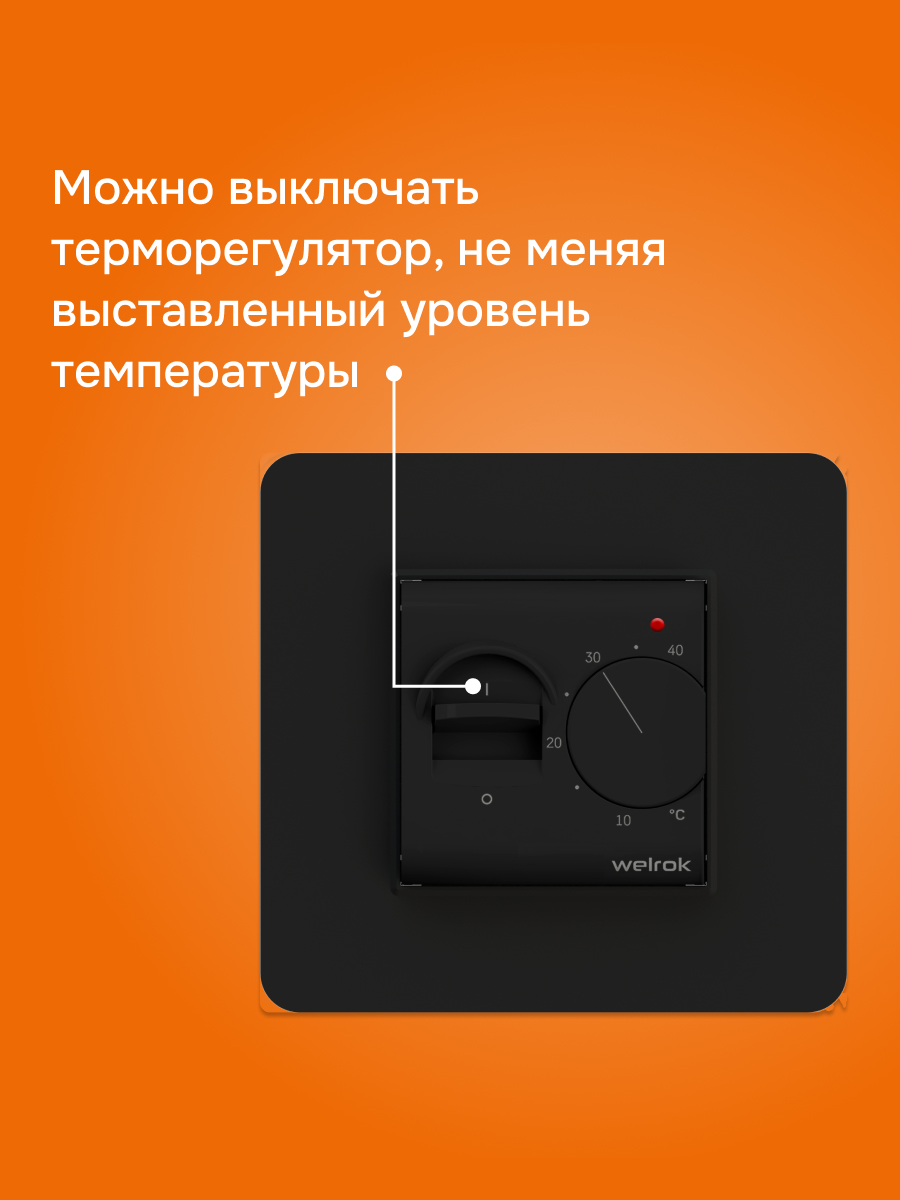 Welrok mex — механический терморегулятор с выключателем для систем теплого пола. Благодаря тумблеру вы можете отключить термостат, не меняя температуру.